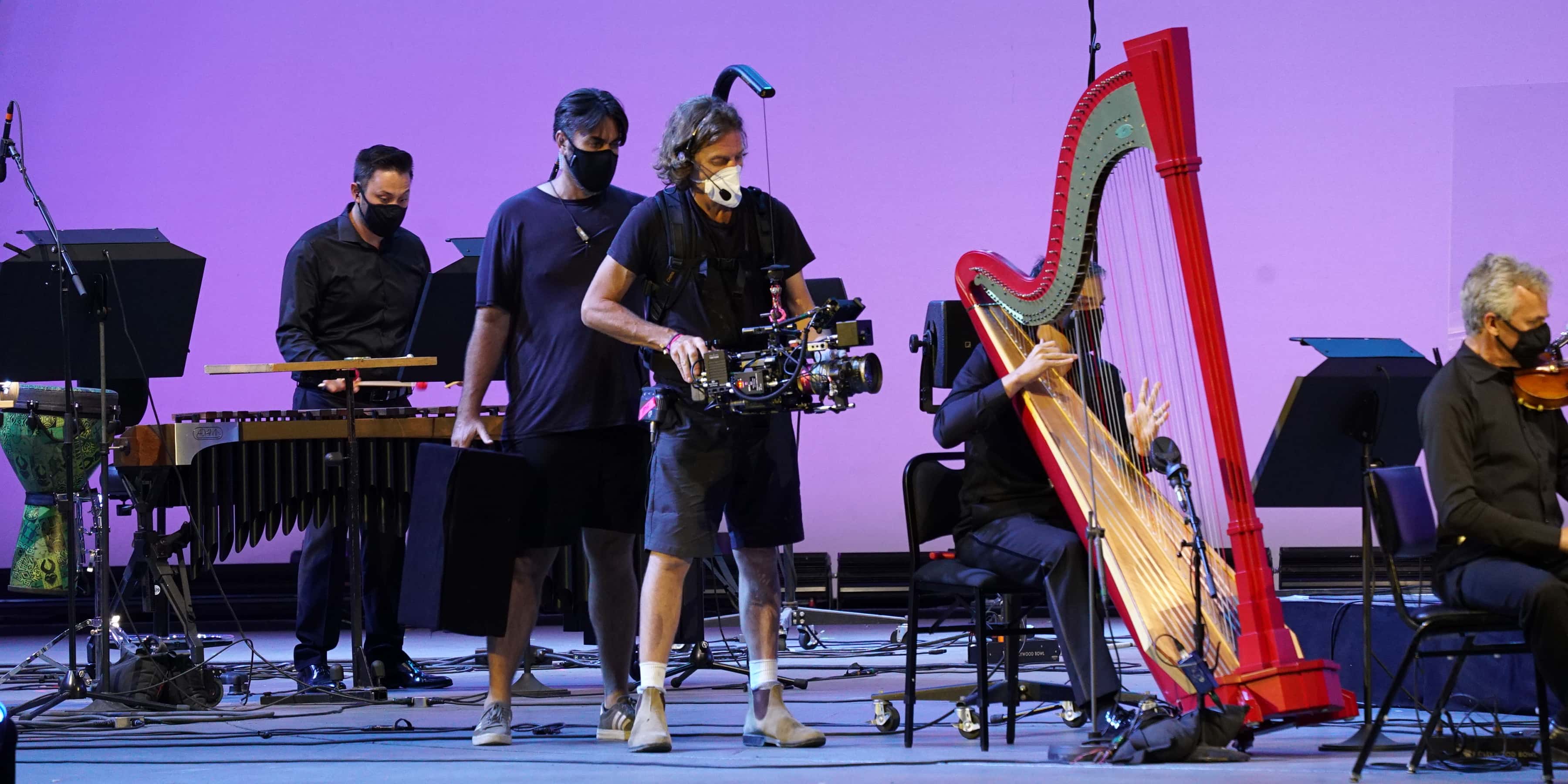 La producción de SOUND / STAGE implicó repensar cómo actúa la orquesta para mantener a todos a salvo. Todos los artistas intérpretes o ejecutantes y el personal de apoyo fueron evaluados para detectar COVID-19 en los días previos a la filmación con pruebas realizadas en el estacionamiento de Hollywood Bowl.