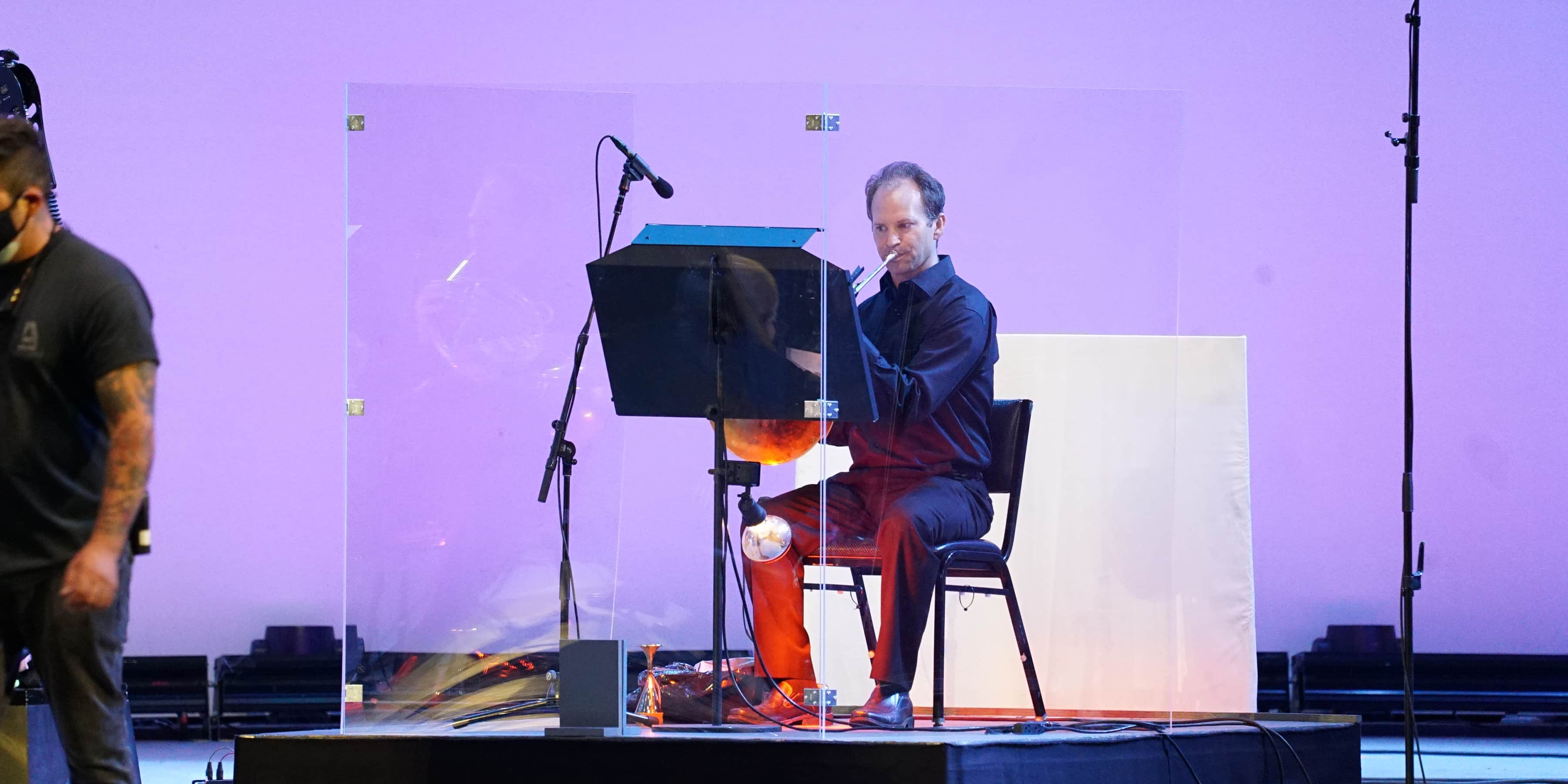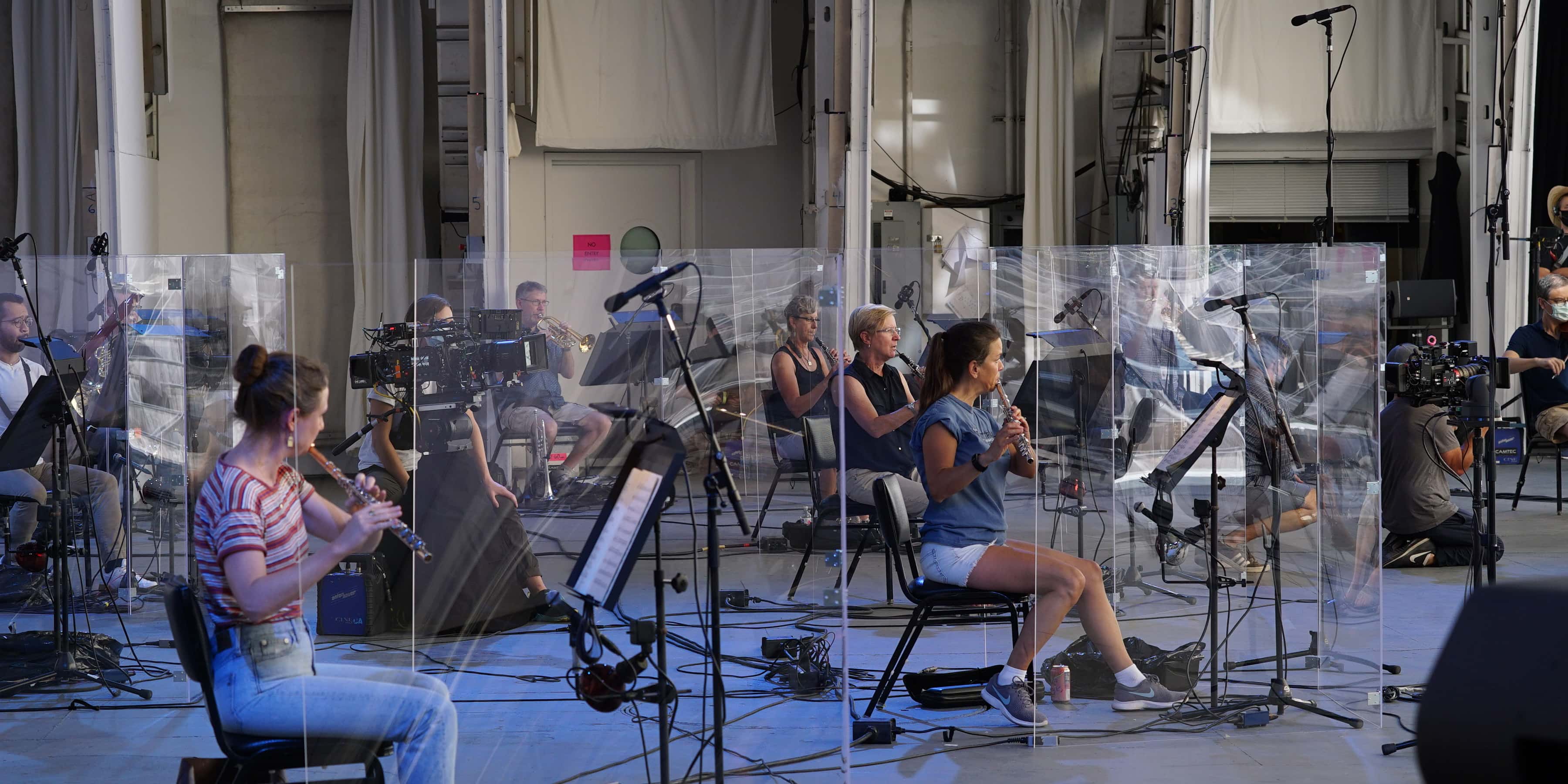 Siguiendo estudios científicos y las mejores prácticas de la industria, todos los intérpretes estaban separados por al menos 12 pies, estaban rodeados por barreras de plexiglás para limitar la propagación de partículas y seguían nuevas pautas para limpiar y limpiar las válvulas de saliva.