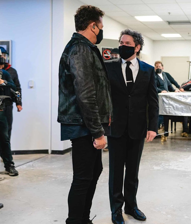 Carlos Vives y Gustavo Dudamel en el backstage del Hollywood Bowl