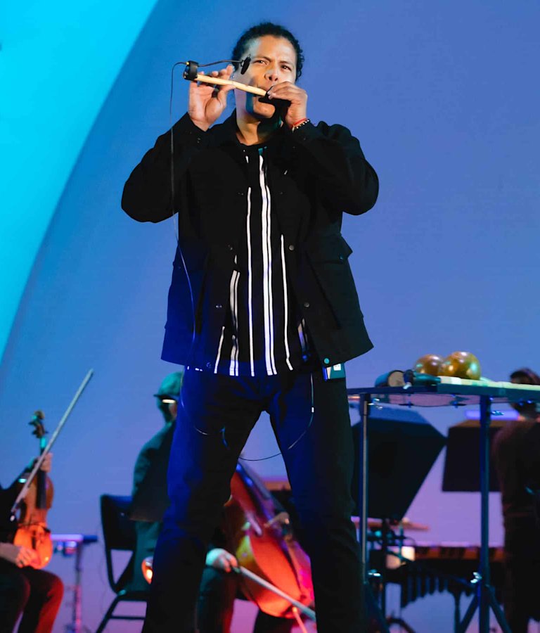 Tato Marenco on indigenous flute with Carlos Vives and the LA Phil